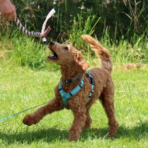 Jeder darf mal „gewinnen“, sprich das Spielzeug erbeuten. Ein Hund, der sein Spielzeug triumphierend davonträgt, ist nicht dominant, sondern hat gerade jede Menge Spaß! Auch Hundeeltern beharren nicht immer auf ihrer Position und lassen auch einmal die Jungspunde gewinnen.